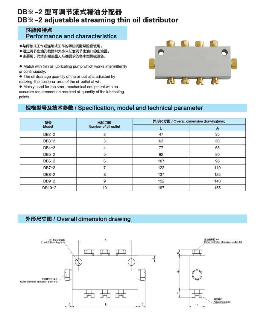 DB-2 adjustable flow type thin oil distributor